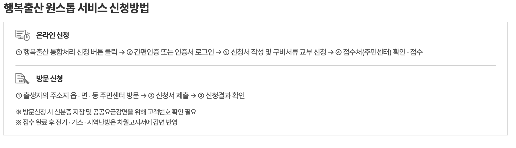 출산 후 행복복지 센터에 방문하여 출생신고와 함께 혜택 신청을 할 수 있으며, 온라인으로도 정부 24 홈페이지에서 신청 가능합니다.