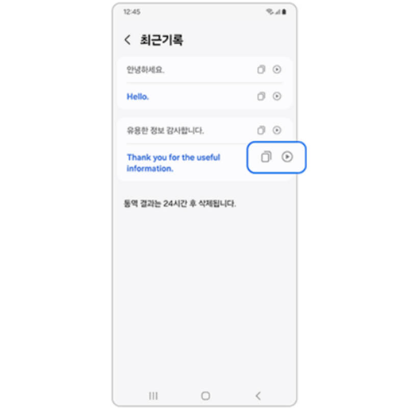 통역 결과는 24시간 후부터는 최근기록에서 자동 삭제됩니다.