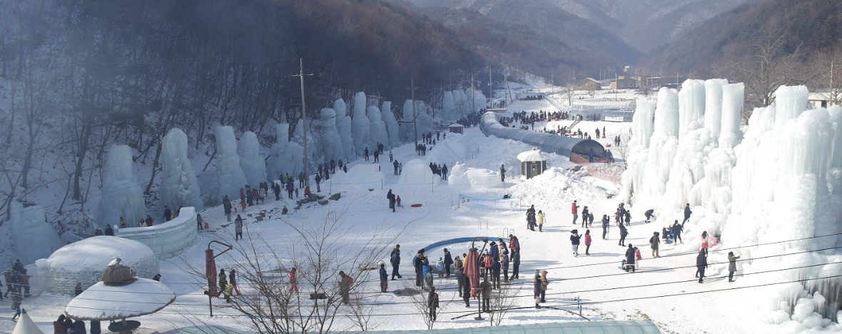 청양 알프스마을의 칠갑산 얼음분수 축제