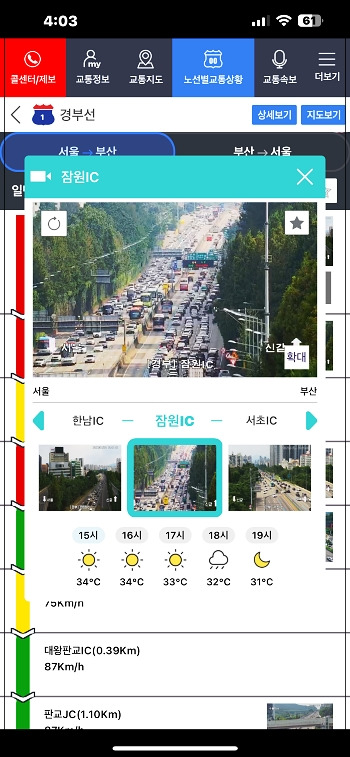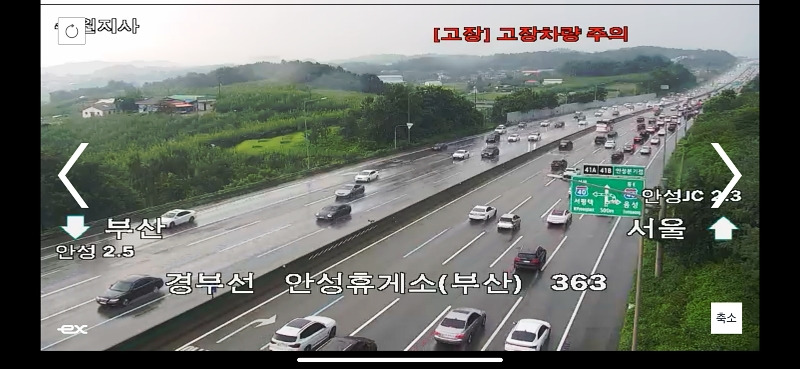 대부분의 주요 구간에서 CCTV 영상이 제공되지만, 일부 지역은 지원하지 않을 수 있습니다.