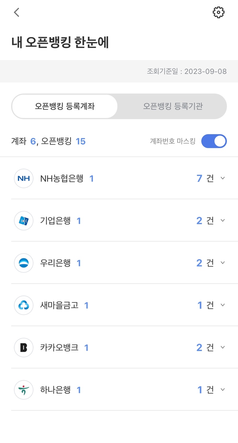 3. 저 같은 경우 한눈에 오픈뱅킹, 내 계좌 보기를 실행해보니 이렇게 간편하게 조회가능한 화면이 나왔습니다.